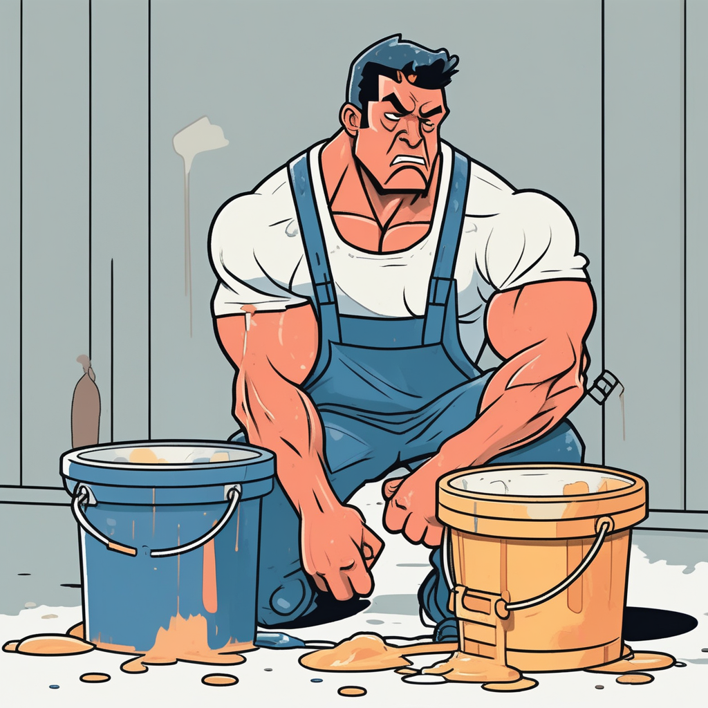 Well-built worker feels guilt over paint he spilt!