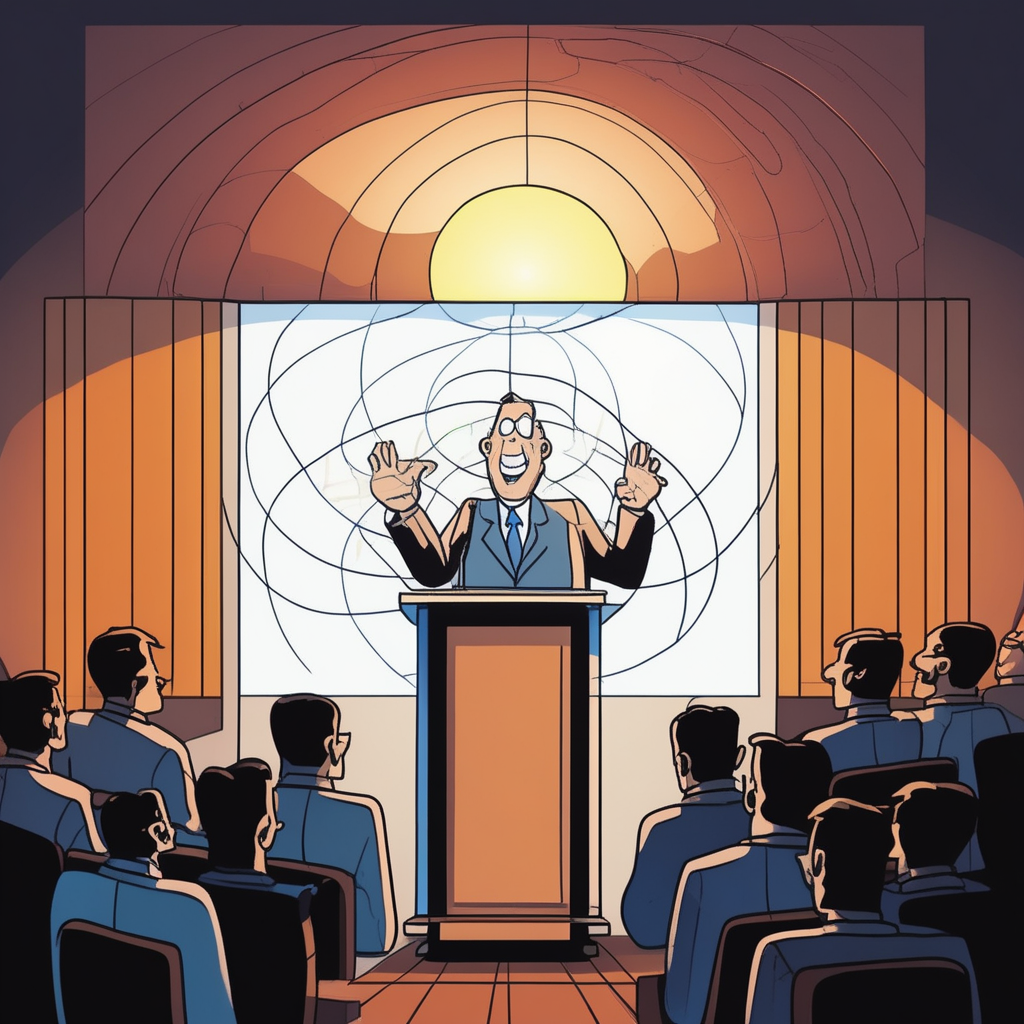 타고난 지혜로 일관된 비전을 제시하니, 지지자들이 고개를 끄덕인다.