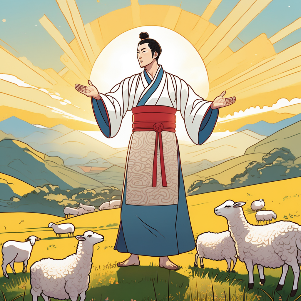 Yang on the sunny hill with sheep! Masculine energy shines like the sun!
