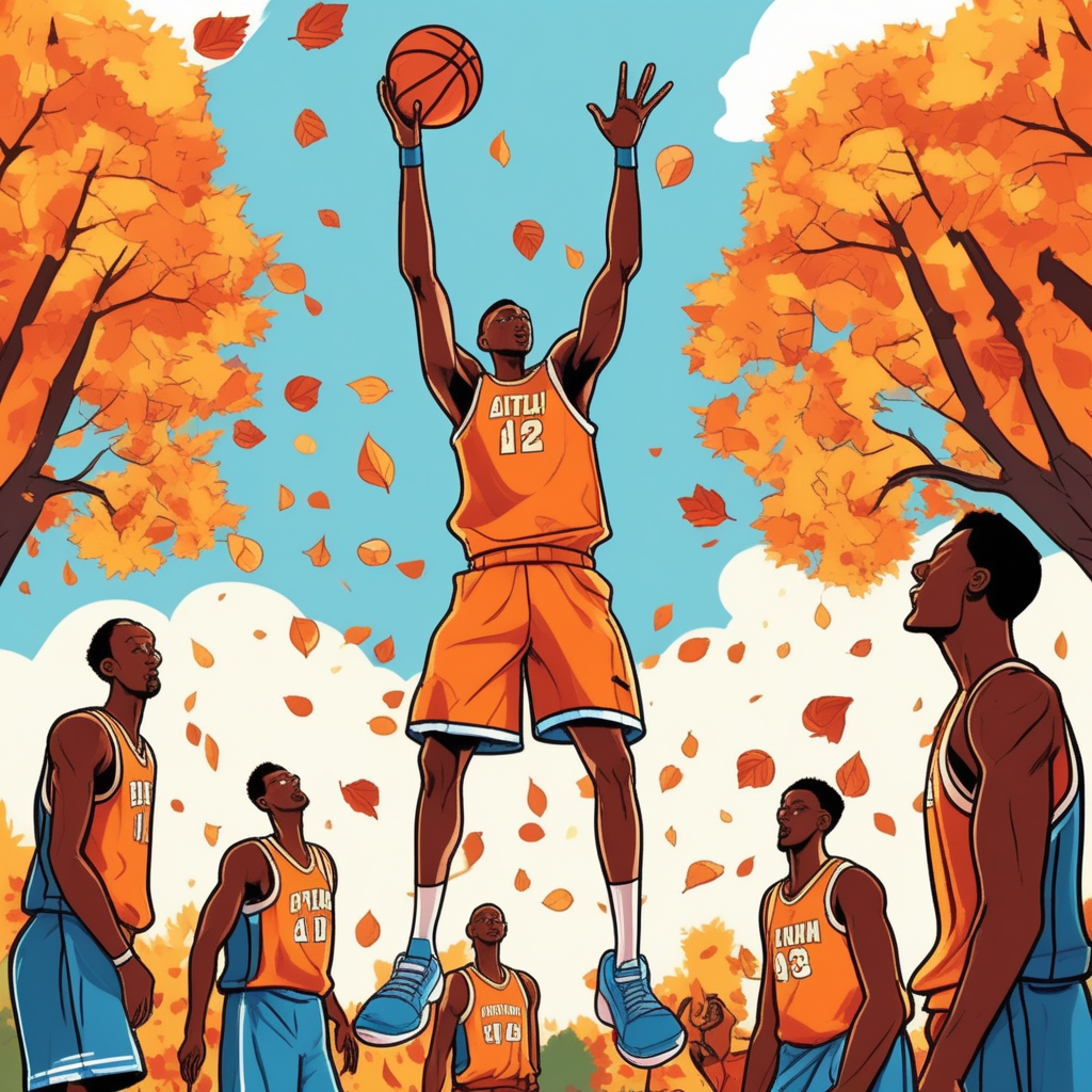 The tall player hears the call as leaves fall!