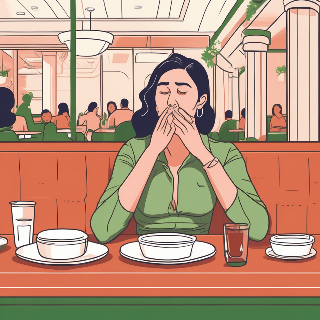 "After eating five hot dogs, Jake felt thoroughly bilious and regretted his decision."