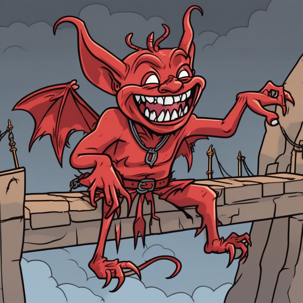The imp tickles the cracked bridge, making it totally impractical!