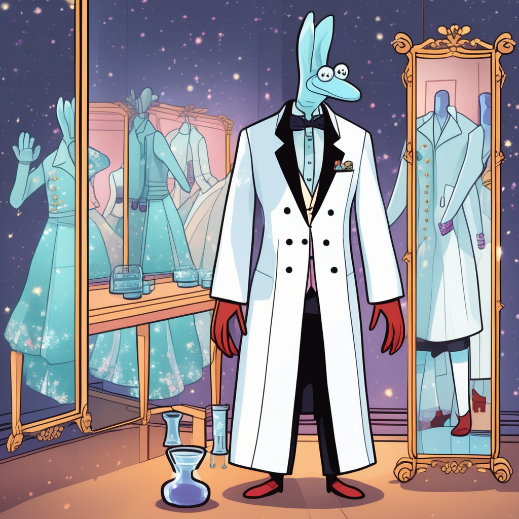 Beaker Ming comes wearing clothes! Transparently suits well and sparkles!
