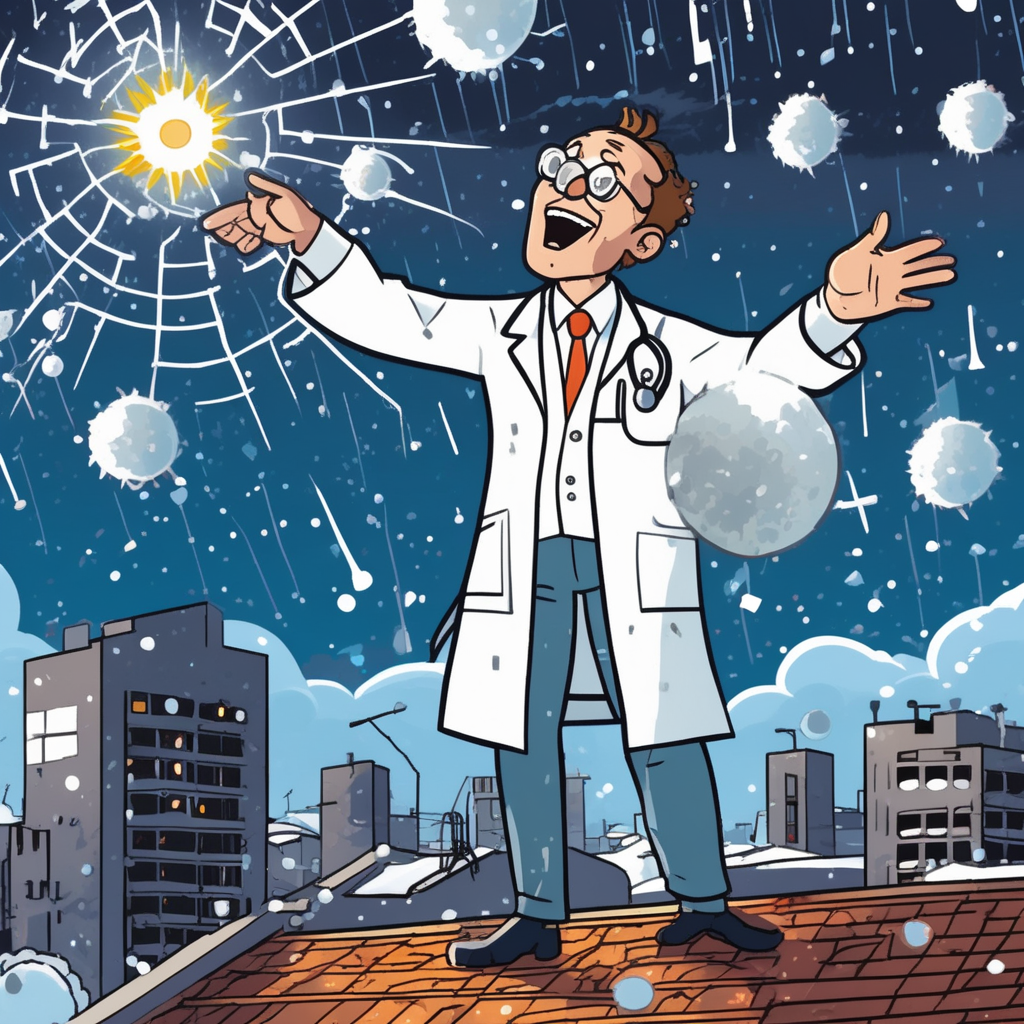 A weather doctor singing 'La-la-la' under the meteor-filled sky!