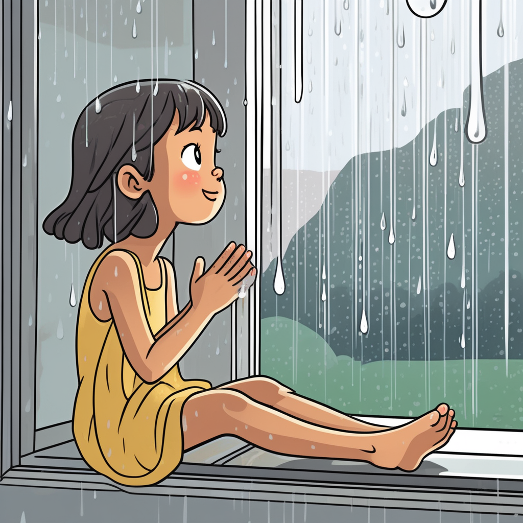 "The cat tried to catch raindrops with its paw and looked confused when they disappeared."