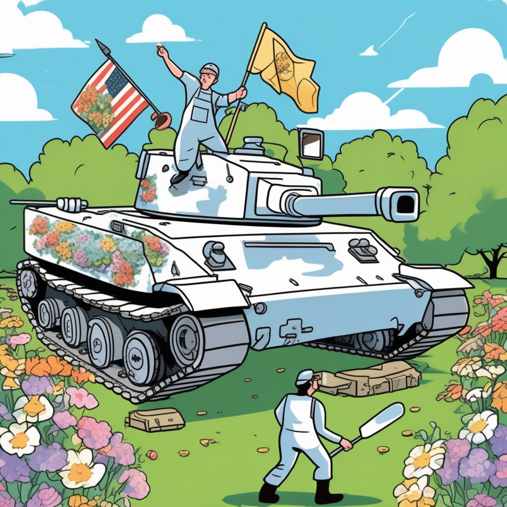 그 슈퍼히어로의 비밀 무기는 모든 무기를 꽃으로 바꿔서 어떤 군대든 즉시 비무장화시킬 수 있었다.