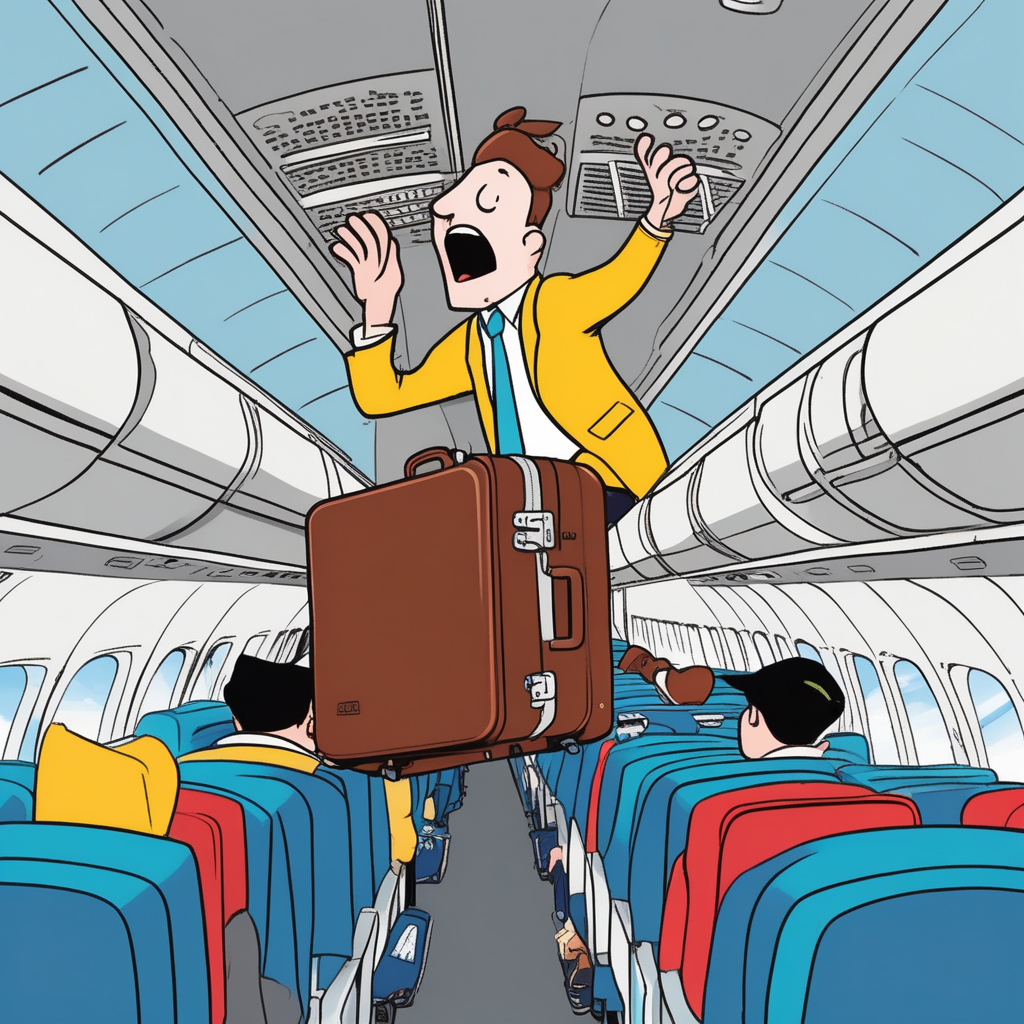 Over! Head! My head is stuck! The overhead compartment is too compact!