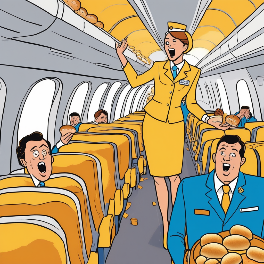 From overhead compartment falls fresh bread!