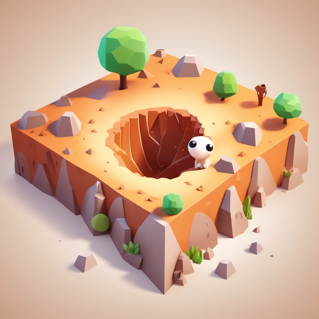 Definition: A large, round hole in the ground made by an explosion or the impact of a meteorite