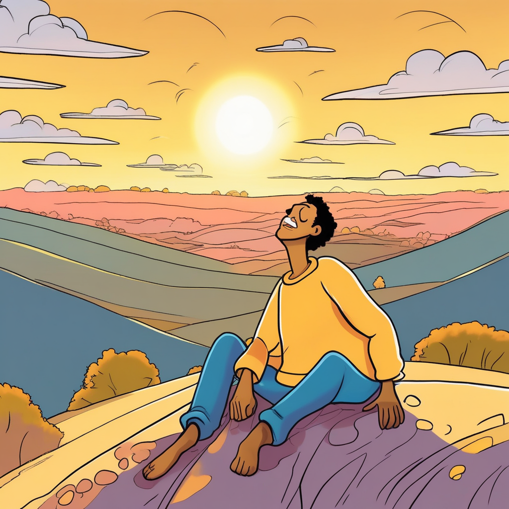 "She sighed contentedly as she watched the sunset."