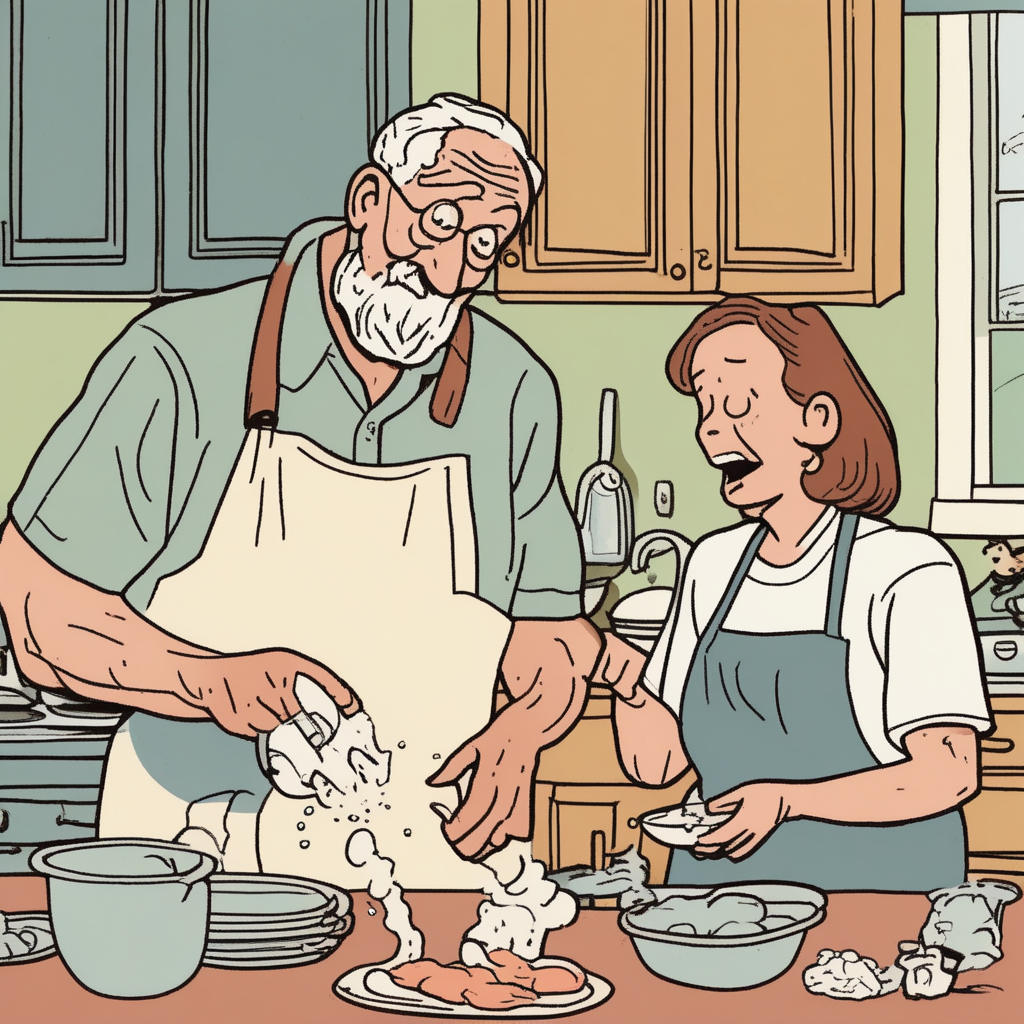 At the gathering, he's blathering while she's lathering!