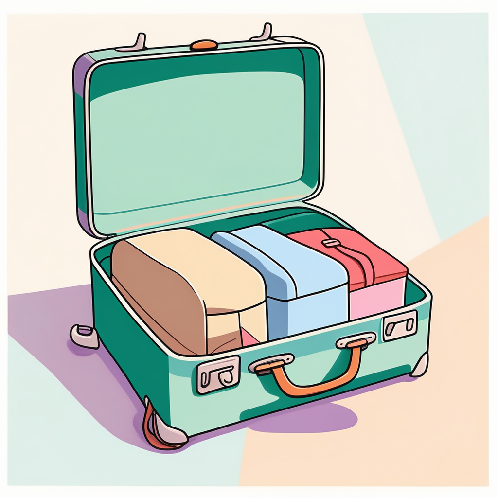 a rectangular piece of luggage with a handle, used for carrying clothes and personal items when traveling