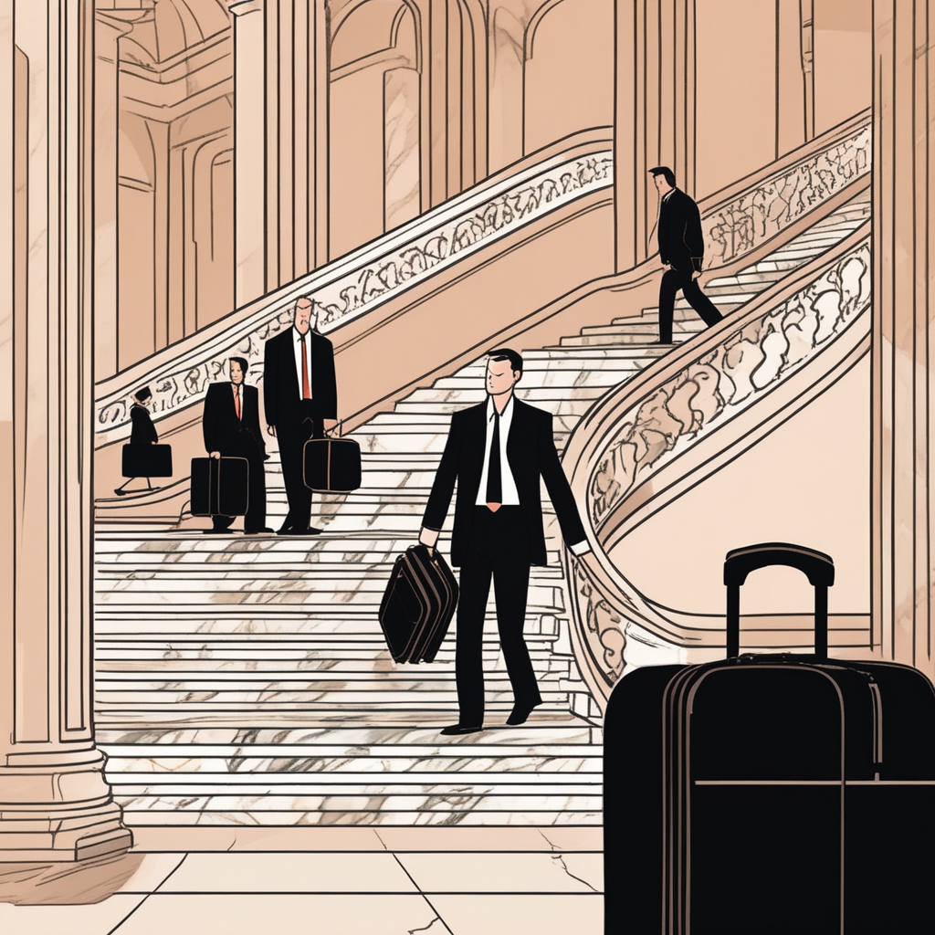 Suitcase and briefcase up the staircase!