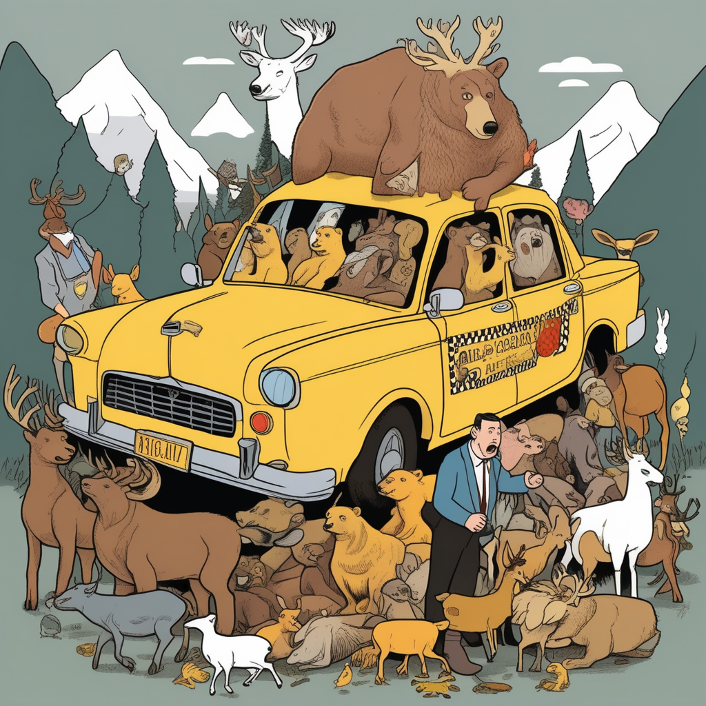 Taxi packed with taxidermy pile! The results of the stuffing art are overflowing!