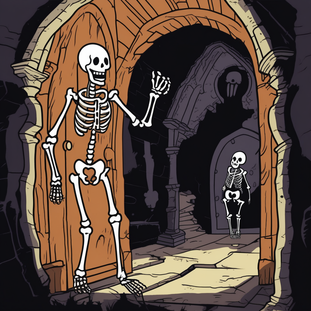 "The haunted house had skeletal decorations that scared even the bravest visitors."