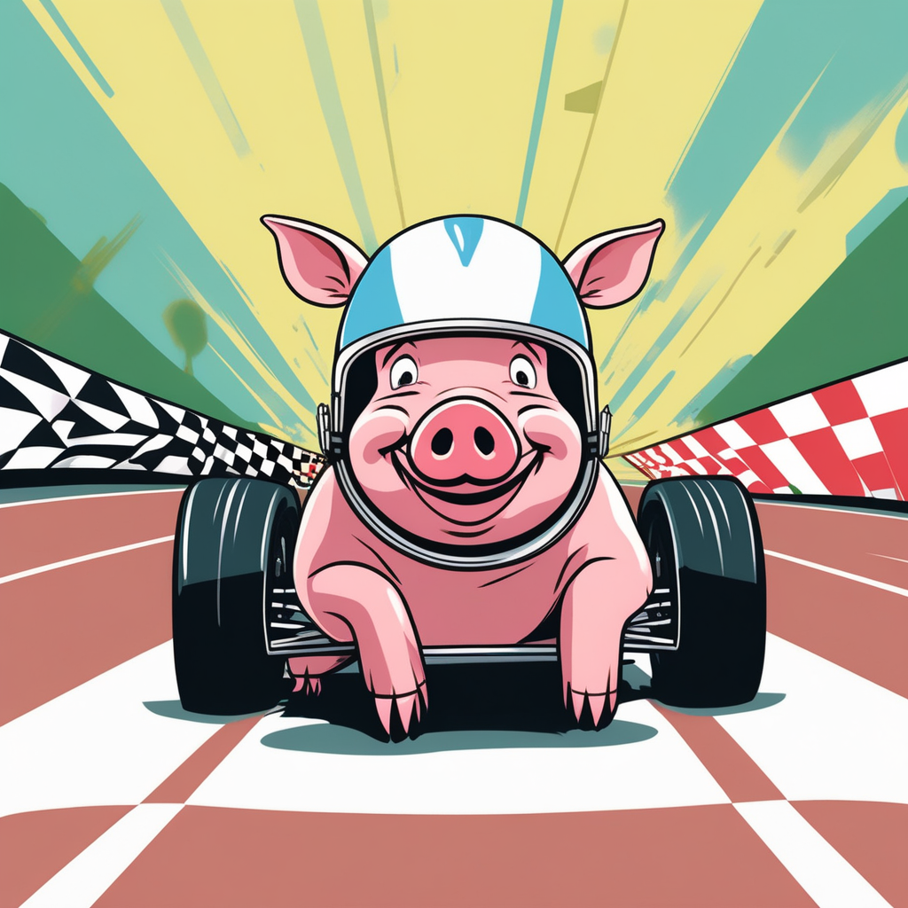 Speed + Nose! The pig is snorting rapidly with a racing helmet on!