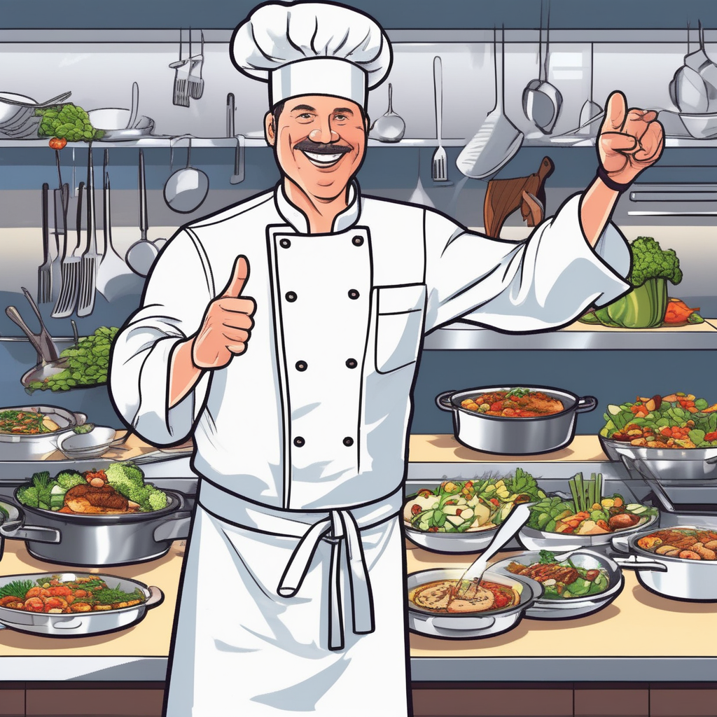 프로 셰프가 '그래서 내가 성공했지!' 하며 자랑스럽게 진보의 길을 가리킨다!