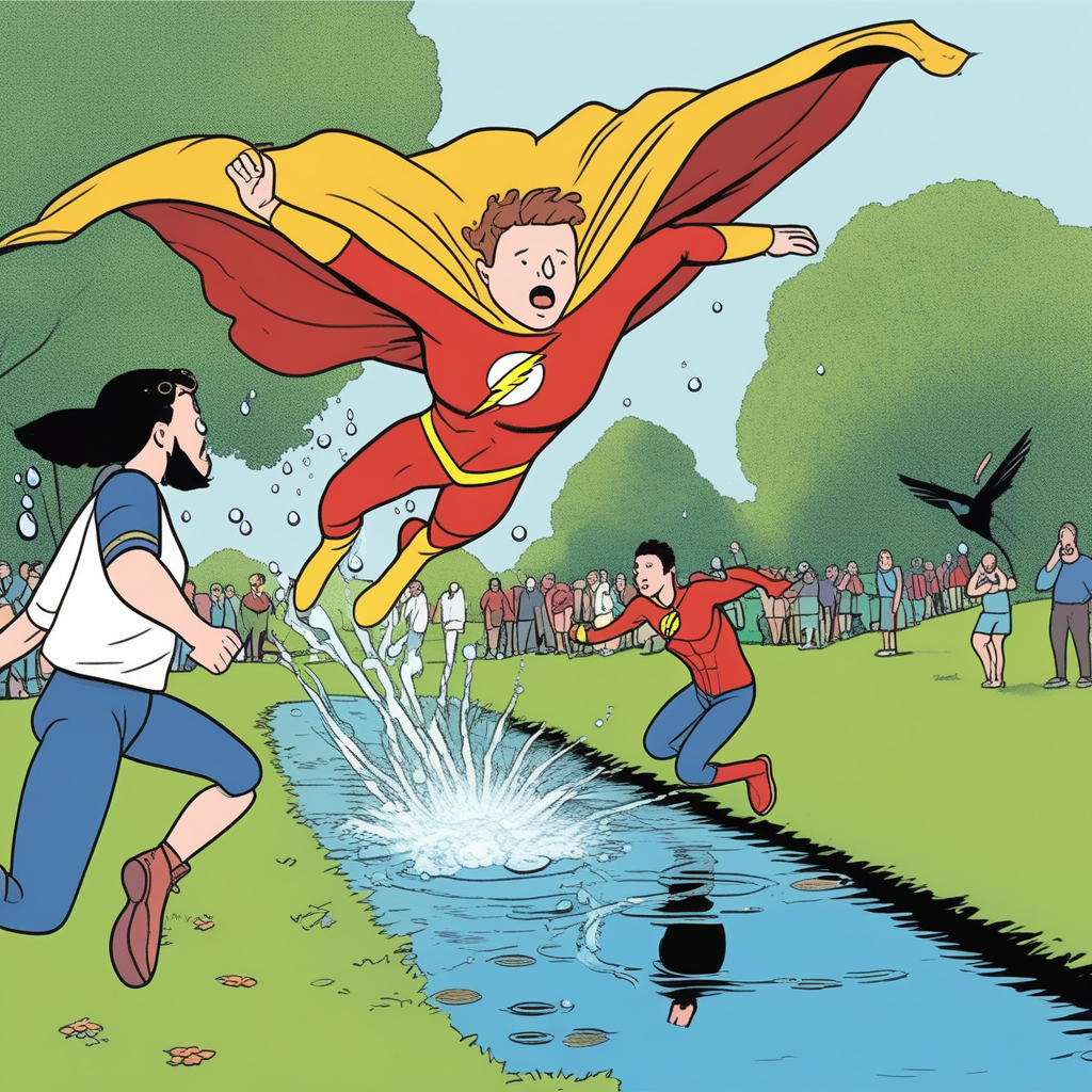 Flash + Running + Ji(pond) = Plunge quickly into water!