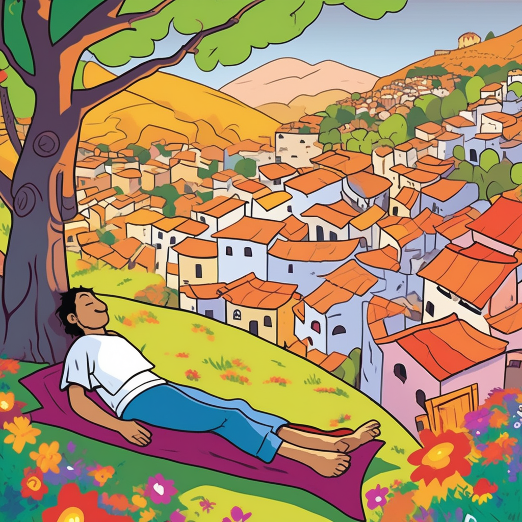After a peaceful siesta, what a vista of the village fiesta!