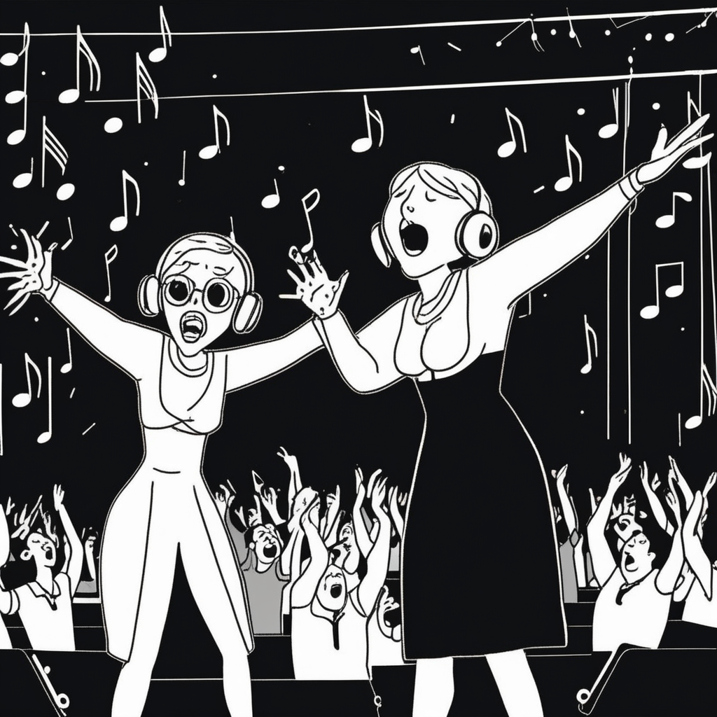 Sister (언니) singing duet (듀엣) too excessively = undue (과도한)!